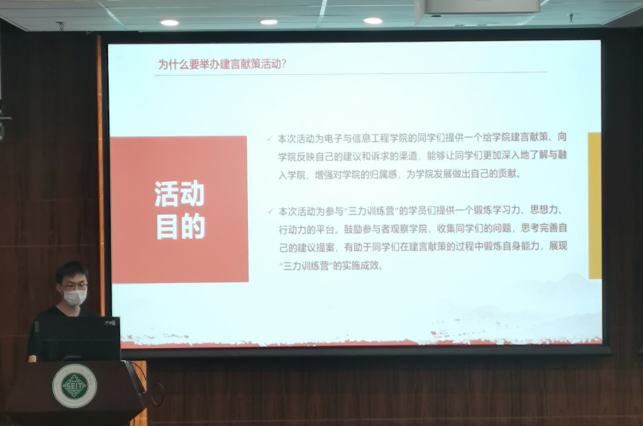 2022年4月22日,“三力训练营”第一届第二期“以思想为导,提升三力综合素质”主题活动在全场高唱团歌中拉开序幕。学院党委副书记王琅、马克思主义学院朱贞副教授、学院团委书记陈子静、团委副书记林玥琪,以及学院全体党团班干部和社团骨干共同参加本次主题活动。大会采取线上、线下结合的方式,线下主会场设在东校园,南校园大一学生骨干通过腾讯视频会议形式线上参会。