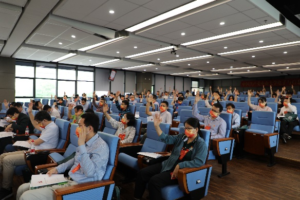 大会上,党员代表认真听取审议并一致举手通过了刘飞同志所作的第一届党委工作报告和党委党费收缴、使用和管理情况报告。