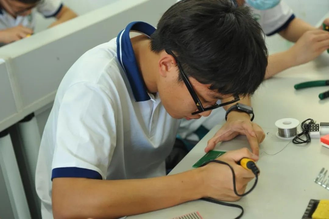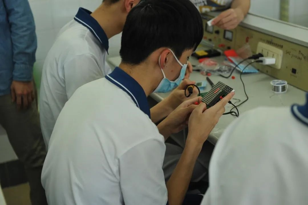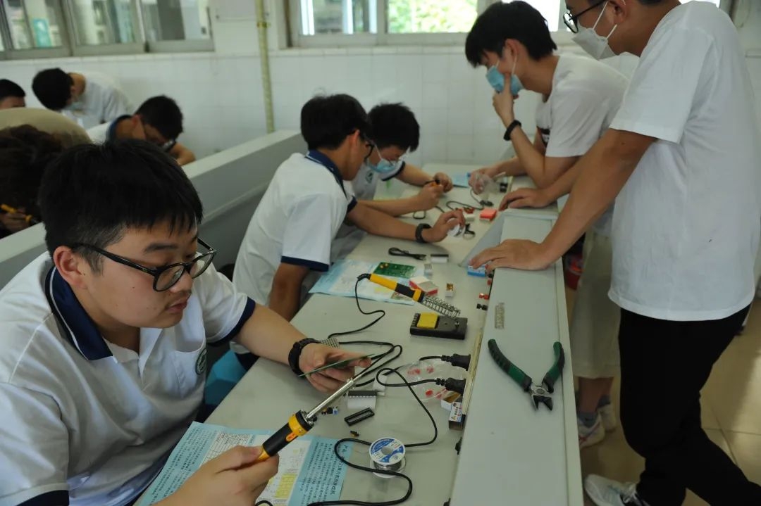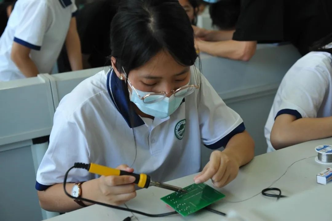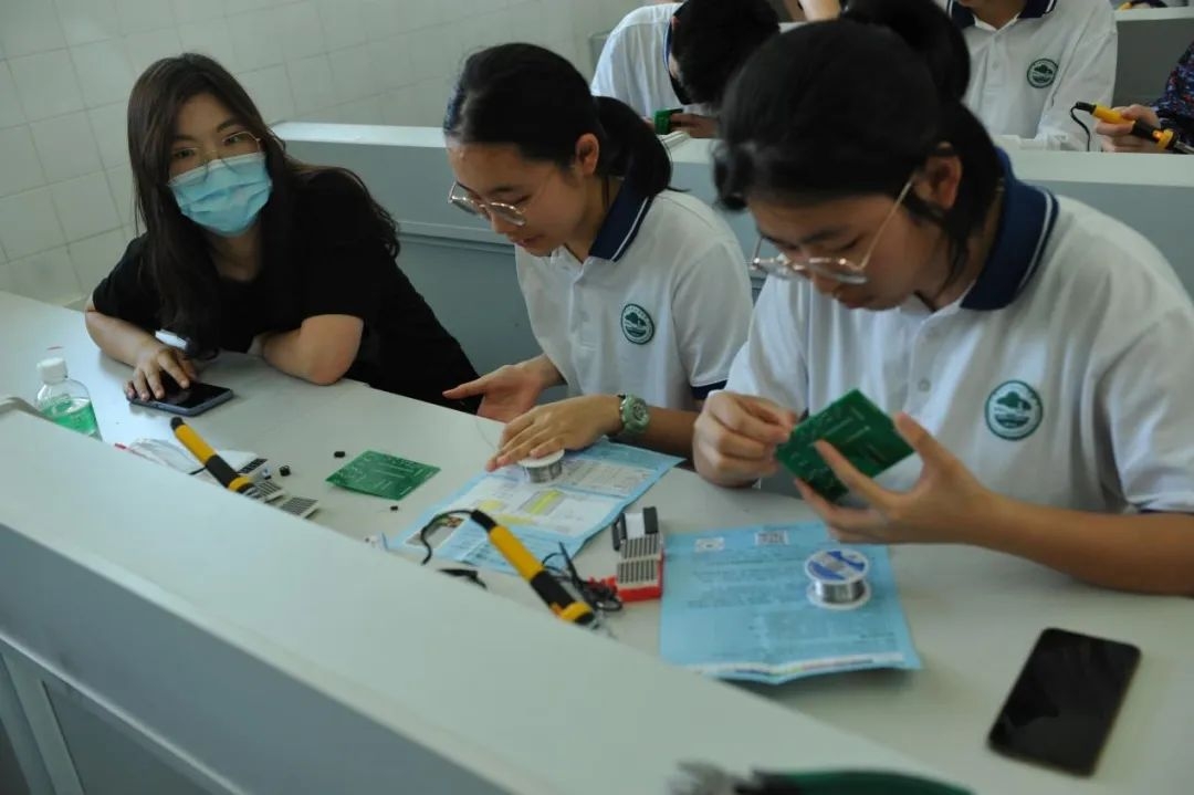 在不断地动手实践中,同学们进一步熟悉了焊枪焊接的技巧,精准地把握焊枪停留的时间和所用的锡量,焊接技术逐渐熟练。