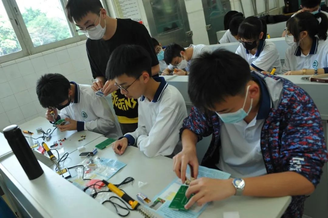 在上个学期我们组织了学院的学生志愿者给附中的同学们传授了如何焊接蓝牙音响。本次活动的主题为组装经典游戏机,志愿者包括本科生团总支实践部黄熹磊、麦梓杰,组织部刘天润,秘书部鲁其欣、王坚,以及大一的志愿者梁智钊、杨子云、林梓博、钟明宏、郑一新等。
