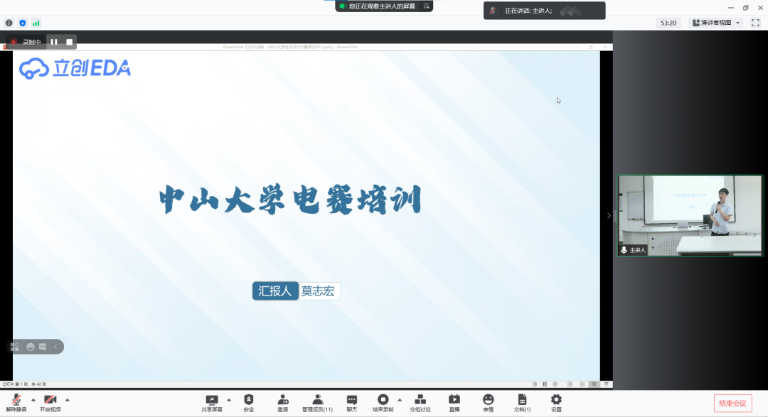 (立创EDA的莫志宏、普源精电的林冬育专家、广州视源电子股份有限公司的林治印、泰克科技有限公司的余炎文等专家培训情况,采用线上线下融合模式培训)