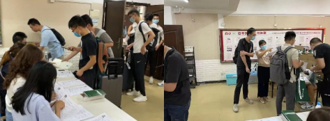 学院工作人员和志愿者们热心帮助,积极指引新生扫码报到,检查健康码、行程码和核酸检测情况,领取校园卡和各种物资,并且收集新生们需要提交的相关材料,整个过程清晰简洁,井然有序。