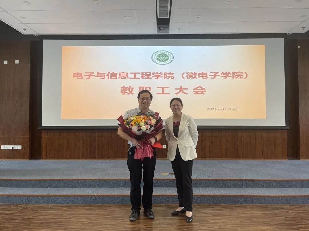 邓少芝院长宣读了《关于表彰南粤优秀教师、南粤优秀教育工作者的决定》,为获得“南粤优秀教师”荣誉称号的陈弟虎教授颁发荣誉证书。她提出了两点希望,一是希望陈弟虎教授再接再厉,继续发挥示范引领作用,争取获得更加丰硕的成果;二是希望广大教职工要以“南粤优秀教师”为榜样,坚决贯彻党的教育方针,做新时代“四有”好老师,为落实立德树人根本任务努力做出自己的贡献。