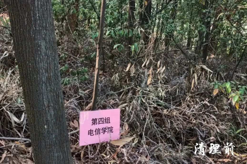 本次活动主要工作为清理东校园明德园冕山枯枝杂草并搬运下山,根据保卫办安排,硕士光电A班第二党支部同志与保卫处两位老师、部分中航物业人员共同负责第四组清理区域。