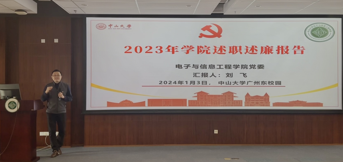 刘飞书记围绕学院党建工作进行述职述廉。过去的一年,学院党委以习近平新时代中国特色社会主义思想为指导,切实担起主体责任,强化党的领导,为学院事业发展提供坚实组织保障;以创先争优为抓手,充分发挥“头雁效应”,引领学院事业高质量内涵式发展;夯实基层党建,提升支部凝聚力和战斗力,打造政治素质过硬的基层战斗堡垒;深入实施新工科党建品牌培育计划,推进党建与中心工作深度融合;严格落实全面从严治党和巡视整改要求,营造风清气正、追求卓越的学院文化。新的一年,学院党委将秉承“立德树人”根本使命,坚持政治思想引领,为学院高质量内涵式发展和中大“百年校庆”贡献最大力量。