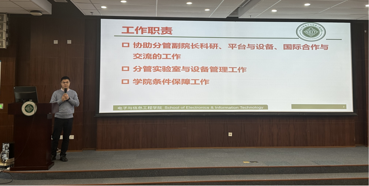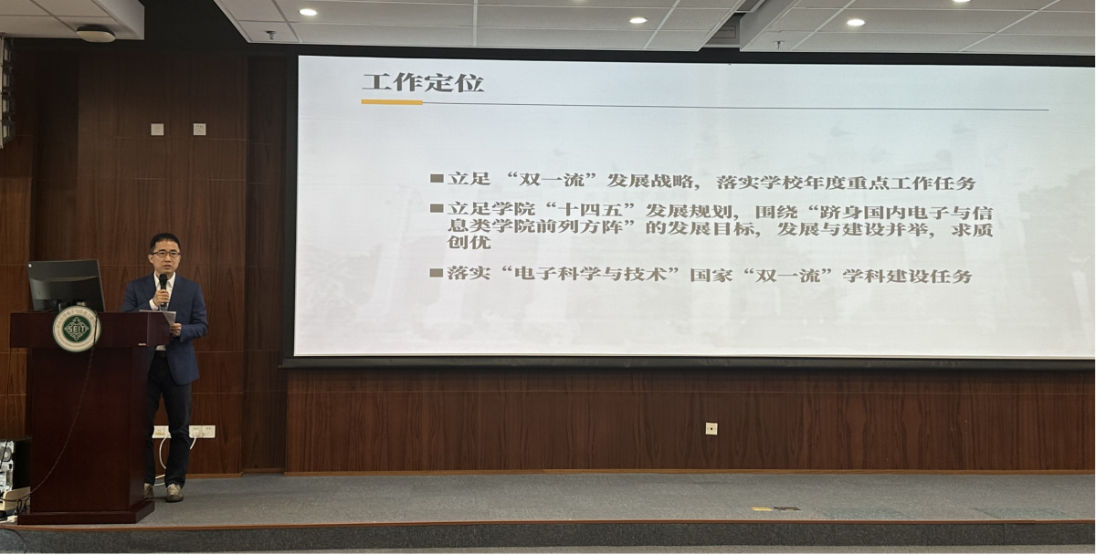 佘峻聪院长围绕学院整体工作进行述职述廉。学院立足“十四五”发展规划和“双一流”发展战略,围绕“跻身国内电子与信息类学院前列方阵”的发展目标,发展与建设并举,求质创优,在人才培养、学科建设、科学研究、师资队伍建设等方面取得了较好的成绩。佘峻聪院长指出,下一阶段学院要在稳步推进基础性工作的同时,抓住校友工作、校企合作、学院影响力提升、办学空间规划等新的发展增长点,进一步提升学院高层次人才队伍建设与人才培养质量、促进各学科均衡发展、加强国际交流、扩大学院影响力,深入推动“双一流”建设,全力推进学院内涵式高质量发展。