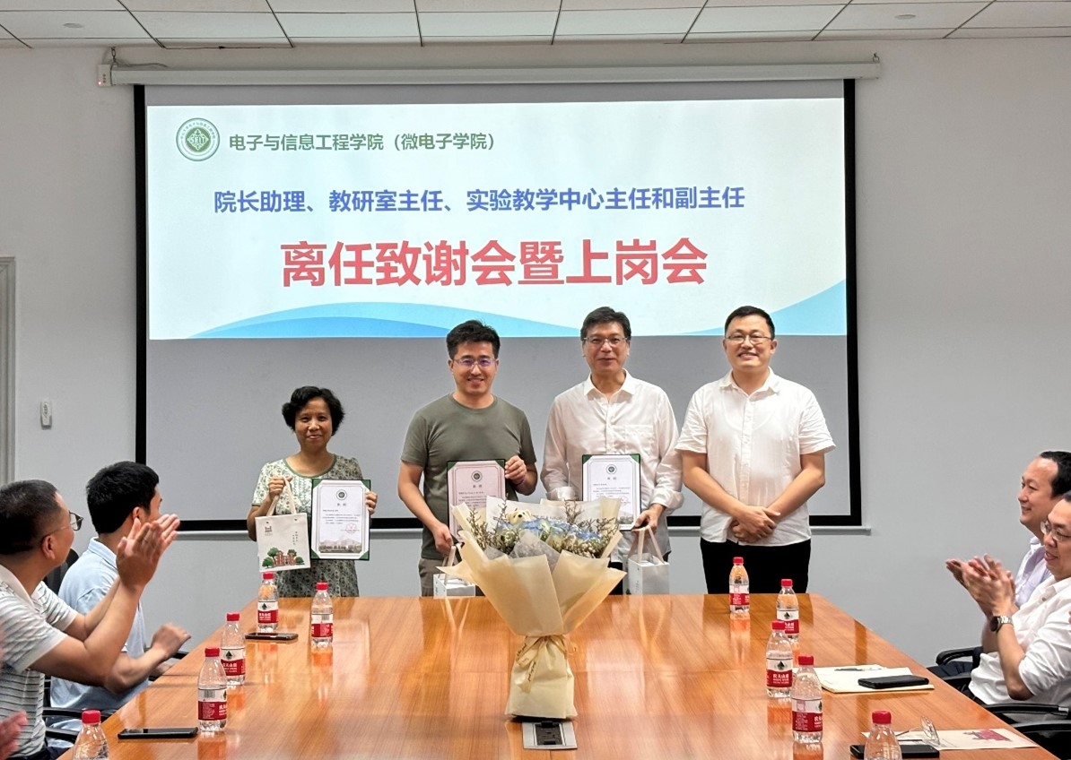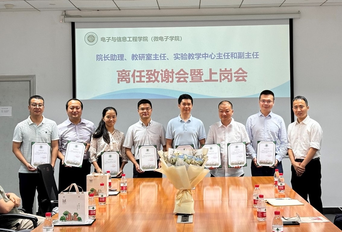 佘峻聪院长为新任院长助理、教研室主任、实验教学中心主任和副主任颁发任职通知。经研究决定:刘正勇副教授连任威廉希尔中文网站平台院长助理;喻颖教授任威廉希尔中文网站平台院长助理;陈翔教授任电子信息科学与技术教研室主任;郭建平教授连任微电子科学与工程教研室主任;邵磊教授任光电信息科学与工程教研室主任;李凡教授任通信工程教研室主任;陈翔教授任电子与信息工程实验教学中心主任;卢星副教授任电子与信息工程实验教学中心副主任。佘峻聪院长对新任院长助理、教研室主任、实验教学中心主任和副主任表达了诚挚的祝贺,并希望他们能够立足岗位、履职尽责,为学院的事业发展贡献力量。