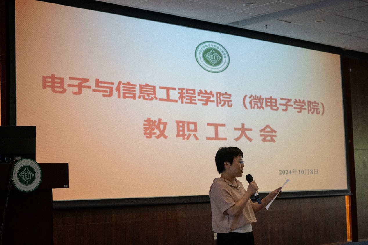 10月8日下午,威廉希尔中文网站平台召开2024年第4次教职工大会,开展全面从严治党和师德师风教育专题报告,进行学院副院长试用期考核述职测评。会议由李敏智副书记主持,学院全体教职工参加会议。