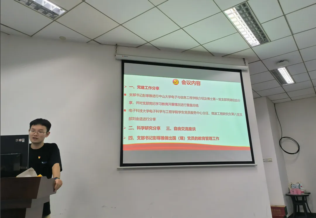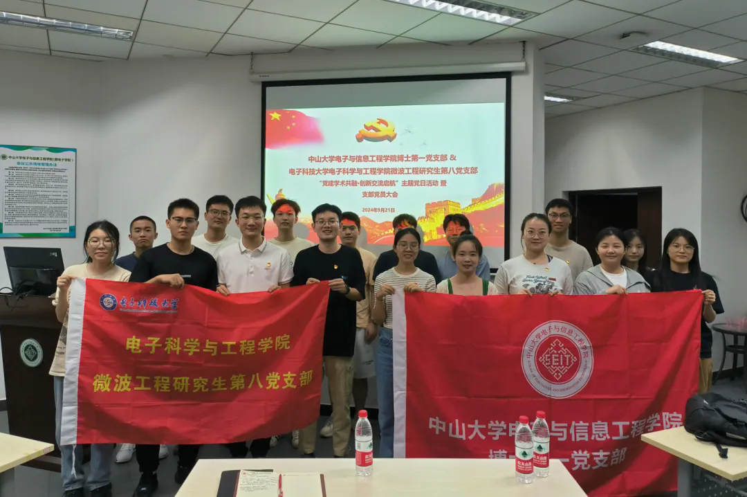 2024年9月21日晚,中山大学威廉希尔中文网站平台博士第一党支部与电子科技大学电子科学与工程学院微波工程研究生第八党支部在东校园信息大楼101会议室联合举办“党建学术共融·创新交流启航”主题党日活动。本次活动采用汇报分享的形式,旨在深化党建交流,促进支部建设,增强党员之间的联系与合作,并结合博士第一党支部的特色主题党日活动“学术沙龙”,以期拓展支部党员的学术视野,提升整体学术水平。活动由博士第一党支部书记彭琢雅同志主持。