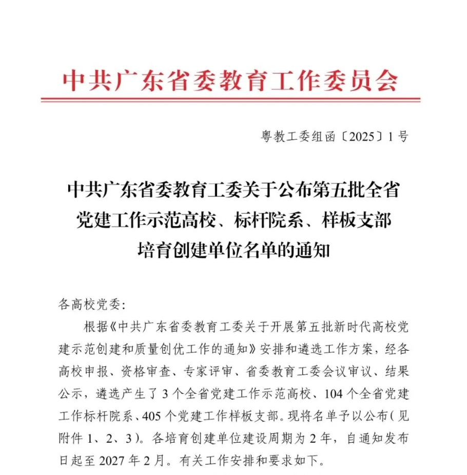 根据《中共广东省委教育工委关于开展第五批新时代高校党建示范创建和质量创优工作的通知》要求,经各高校申报、资格审查、专家评审、省委教育工委会议审议,威廉希尔中文网站平台成功入选广东省第五批全省“党建工作标杆院系”创建名单。